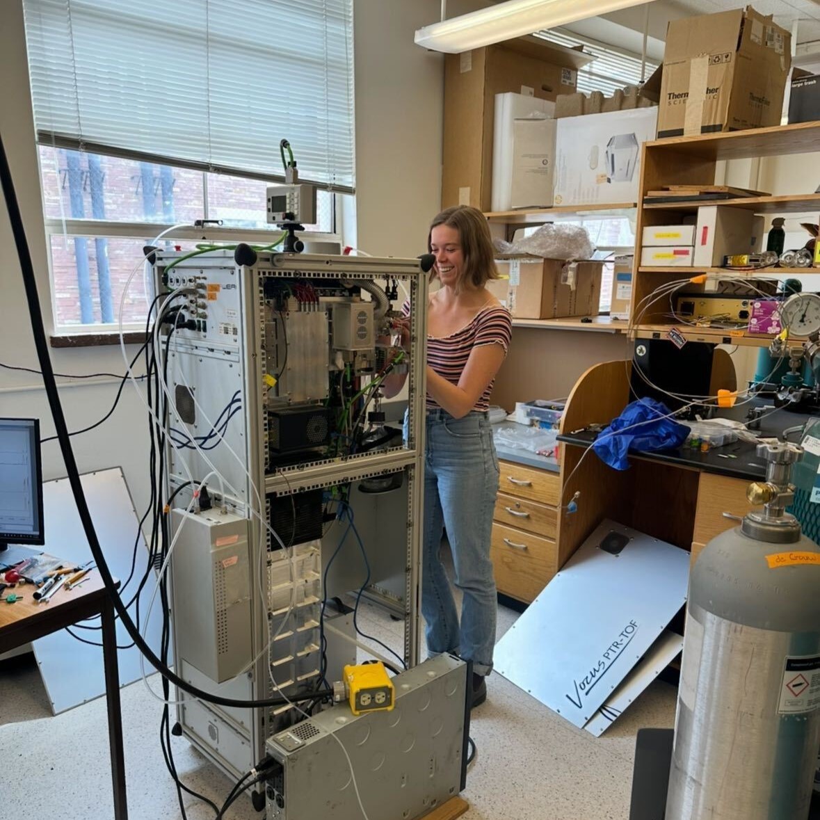 Setting up the exhaust line from the Vocus at the La Casa site during the Denvex Field Study (Summer 2024).