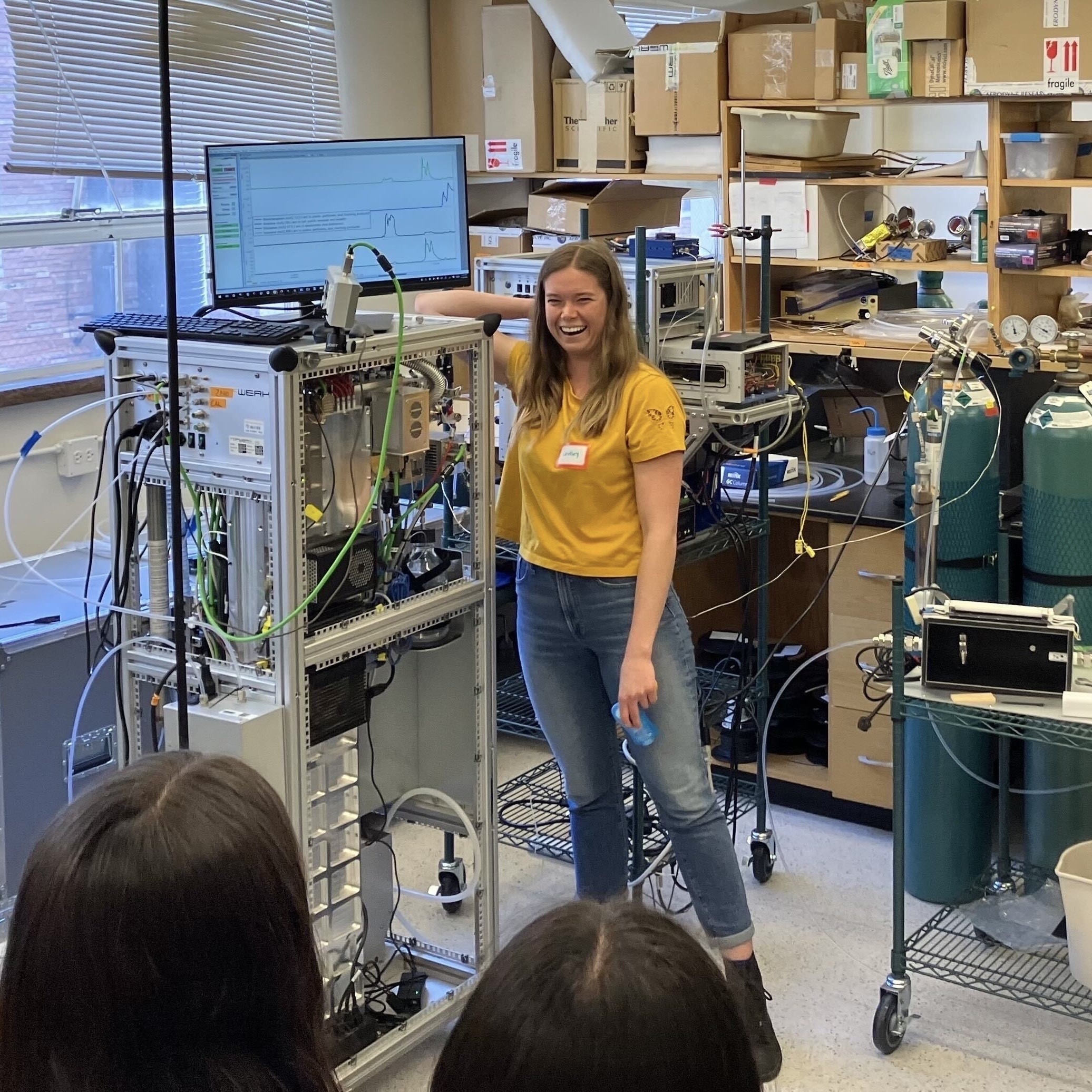 Showed middle school students how our Vocus PTR ToF-MS works by showing the VOC peaks assocaited with nailpolish remover, an orange, and deodorant.