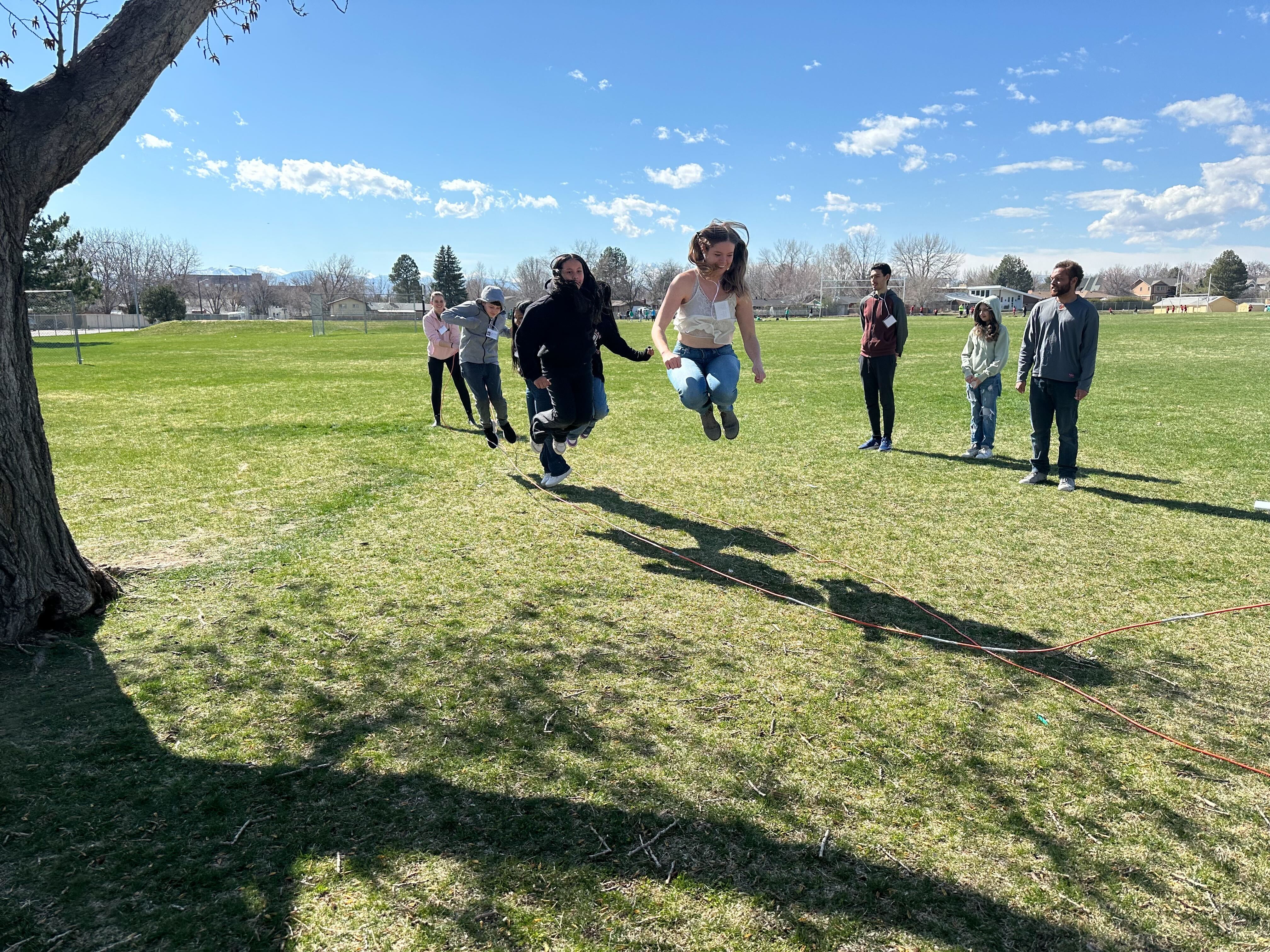 Over the past four years of my Ph.D. at CU Boulder, one of my most meaningful experiences has been my deep involvement with the PISEC program, where we visit the same classroom nearly 10 times each semester to build lasting connections with students. As a PISEC site leader, I lead a team of eight volunteers to spark curiosity through fun, inquiry-based science activities and to help students build strong science identities. For example, the photo on the right shows an activity from our electricity and magnetism curriculum, where we measure the induced current as we jump rope through Earth's magnetic field.